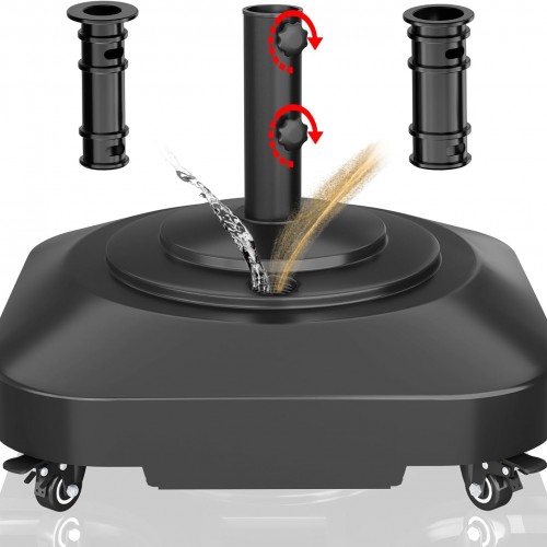 🥇 Patio Umbrella Base Heavy Duty with Wheels, Max 100lb Fillable Umbrella Stand Mobile Square Market Stand, Windproof Outdoor Umbrella Holder for Deck, Poolside, Lawn, Fits Muti Sized Umbrellas