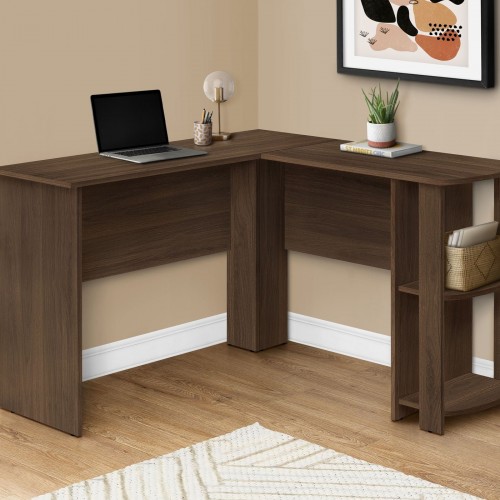 Computer Desk, Home Office, Corner, Storage Shelves, L Shape, Laptop, Contemporary & Modern – Walnut