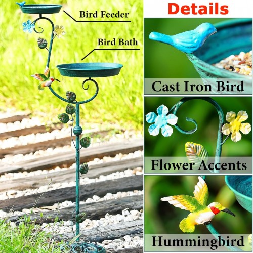 Bird Baths for Outdoors, 43″ Tall Cast Iron Bird Bath and Feeder, Pedestal Bird Bath for Outside, Metal Heavy Duty 2 in 1 Birdbaths and Bird Feeders, Decorative Birdbath for Garden Yard