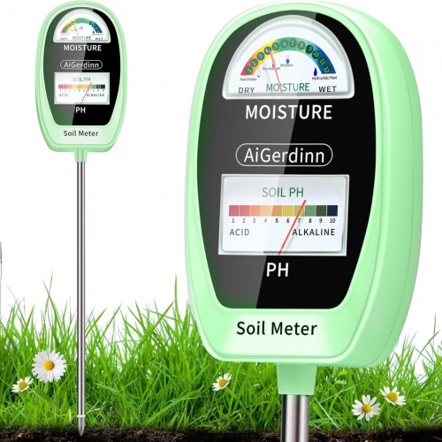 Soil Test Kit, 2-in-1 Soil Moisture Meter, Soil pH Meter -Dual Dial-Simultaneously-Display Results-Soil pH Tester, Moisture Meter for Garden,Lawn,Farm Indoor&Outdoor Plants-Teargreen