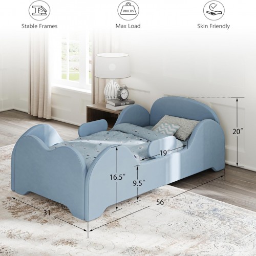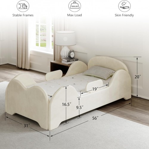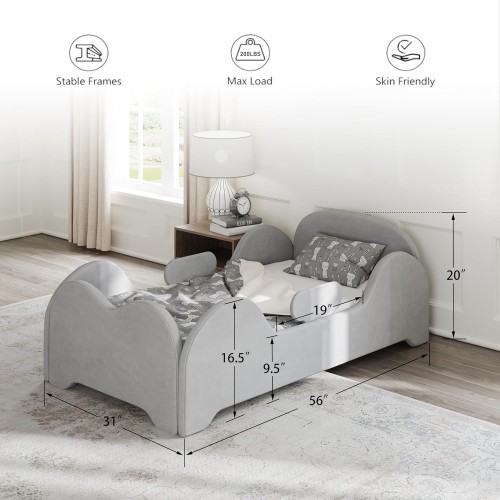 Toddler Bed, Toddler Floor Bed Frame with Guard Rails, Kids Bed for Ages 2-6 Years, Certified Fabric