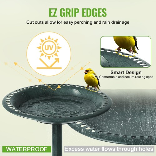 Backyard Expressions Outdoor Garden Bird Bath – Green – Weather Resistant Polyresin – 27 Inch