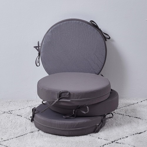 15 x 15 Inch Round Cushions for Outdoor Furniture Non-Slip Waterproof Patio Bistro Chair Cushion with Ties Bar Stool Seat Cushion for Kitchen Chairs Set of 4, Dark Gray