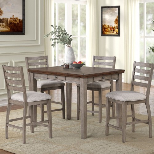 Counter Side Dining Stool With Ladder Back (Set of 2) – Gray