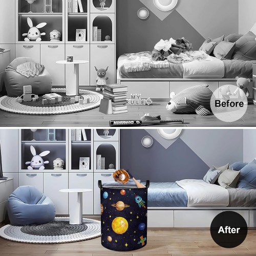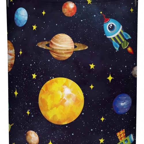 Clastyle 45L Boy Planets Nursery Hamper Outer Space Collapsible Laundry Basket Kid Room Rocket Toy Storage Basket