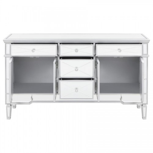 Dorielle – Round Mirrored Acrylic Crystal Side Table – Silver