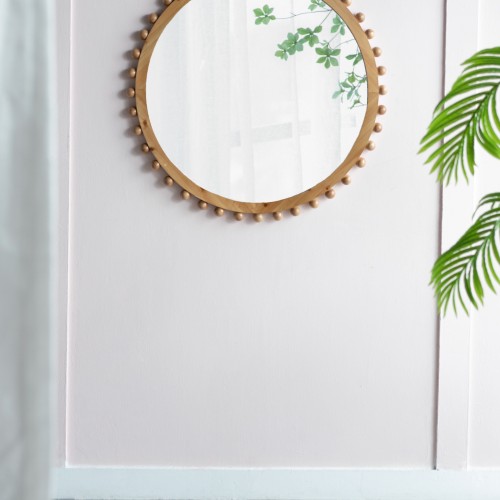 Wood Round Mirror With Beaded Frame, Circle Wall Mirror For Living Room Bedroom Entryway – Brown