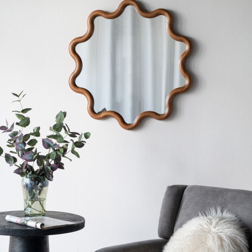 Wooden Accent Mirror With Unique Frame, Wall Mirror For Living Room Bedroom Entryway – Brown