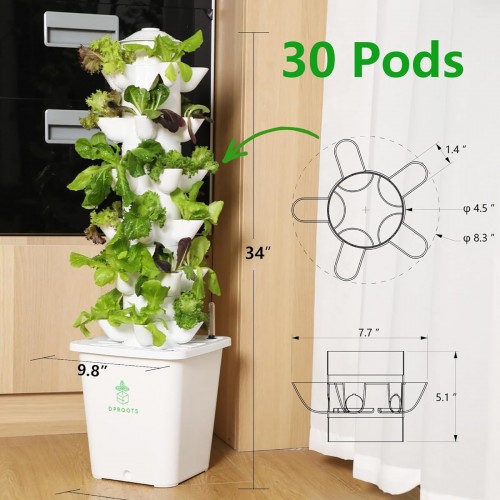 Hydroponic Tower Growing System,30 Pods Vertical Garden,Suitable for Indoor and Outdoor, Grow Herbs and Vegetables,Houseplant Farming with Water Circulation and Automatic Timer