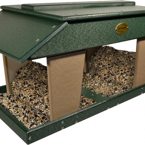 DutchCrafters Poly Post Mount Extra Large Double Hopper Bird Feeder, Outdoor Wild Bird Feeder for Outside, USA Amish Made (Turf Green & Weatherwood)