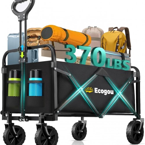 Collapsible Wagon with Wheels, 370lbs Weight Capacity Foldable Beach Wagon with Flexible Handle Portable Utility Wagon Cart for Outdoor, Grocery, Garden, Camping