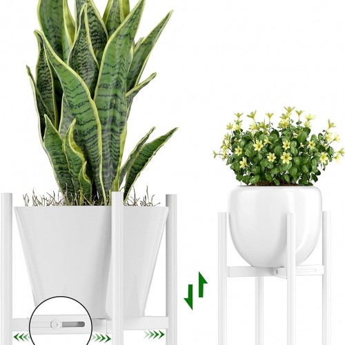 EKNITEY Adjustable Plant Pot Stand: Indoor Outdoor Modern Flower Holder Metal Plant Rack Organizer Planter Stand for Garden Patio Corner Bathroom Living Room Balcony Home Office (White)