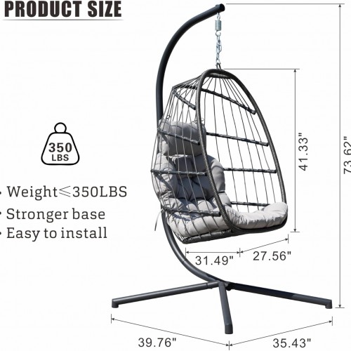 FREDEES Egg Swing Chair with Stand, Outdoor Hanging Egg Chair with Cushion for Patio/Porch/Balcony/Indoor (Light Gray)