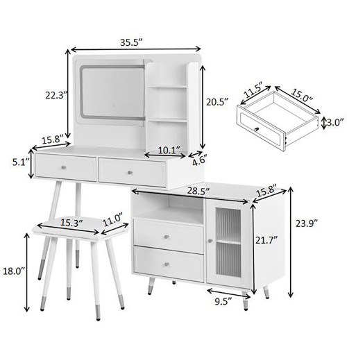 Modern Makeup Vanity Desk With Mirror And Lights Retractable Design Engineered Wood – Black