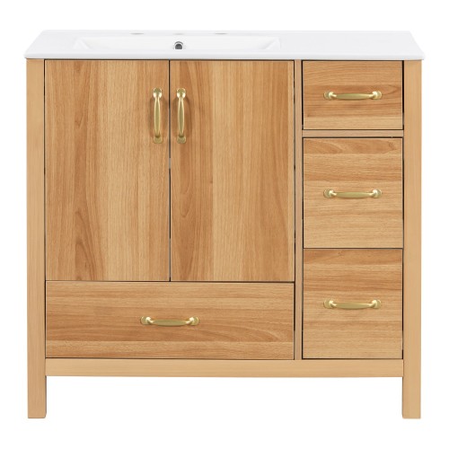36″ Bathroom Vanity With Top Sink, Basin On Cabinet With 2 Soft Closing Doors And 2 Drawers – Blue
