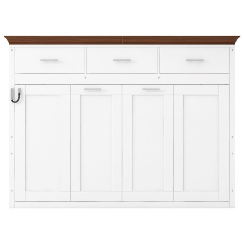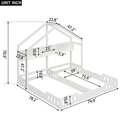 Twin Size Platform Bed With Shared Design, Guardrails, And Built In Shelves – Creamy White