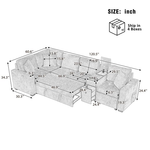 Contemporary L Shaped Convertible Sofa Bed With Pull Out Bed, Cup Holders, And Storage Blue