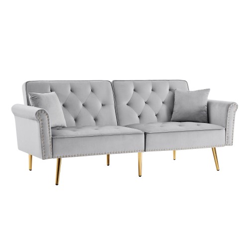 Tufted Accent Chairs With Color Metal Legs, Modern Dining Chairs For Living Room Orange 2 Pieces
