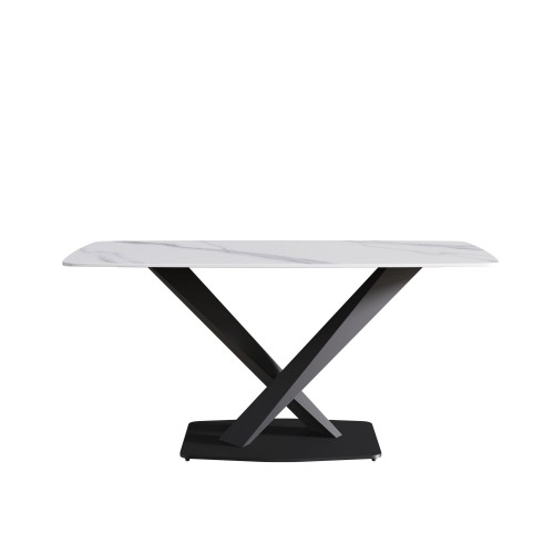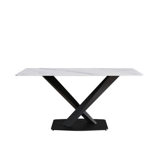 63″ Modern Artificial Stone Straight Edge Metal X-Leg Dining Table, 6 People – White / Black