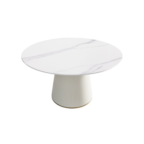 Modern Artificial Stone Round Carbon Steel Base Dining Table, Can Accommodate 6 People – Black