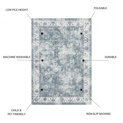 Toucan – 5′ X 7′ Washable Non – Slip Area Rug, Elegant Design – Silver