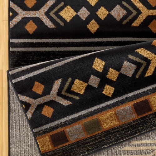 Tribes – 2’7″ X 7’3″ Southwest Area Rug Polypropylene – Black
