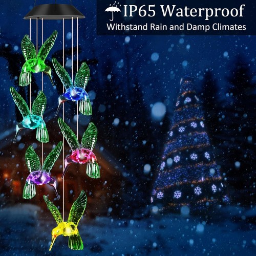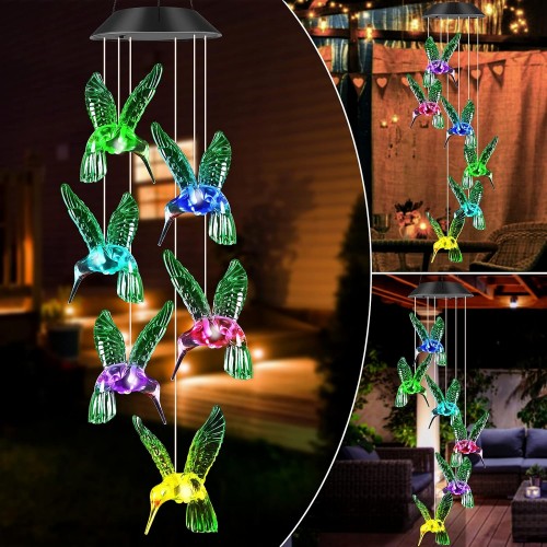 JOBOSI Hummingbird Decor Gifts, Solar Hummingbird (3.5 * 4.5in) Wind Chimes Lights, Mothers Day Wind Chime Gift, Gifts for mom, Women, Grandmother, Outdoor Garden Lawn Yard Decor