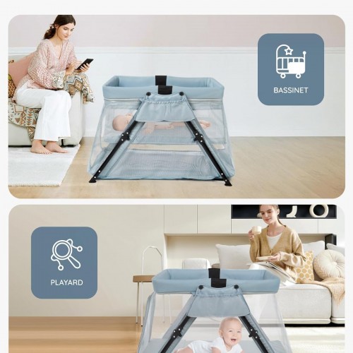 Lilian&Gema 2-in-1 Travel Crib, Portable & Foldable Crib with Backpack, Lightweight Baby Travel Playpen with Thick Mattress for Babies & Toddlers, Baby Travel Essential