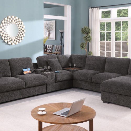 Celine – Corner Sectional Sofa With Right Facing Chaise, Cupholders, And Charging Ports – Gray
