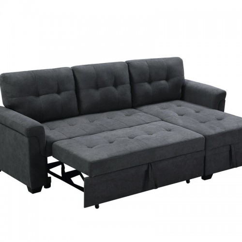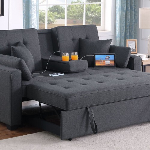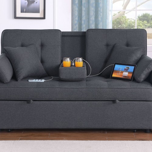 Cody II – Convertible Sleeper Loveseat With Cup Holder, Charging Ports and Pocket – Dark Gray