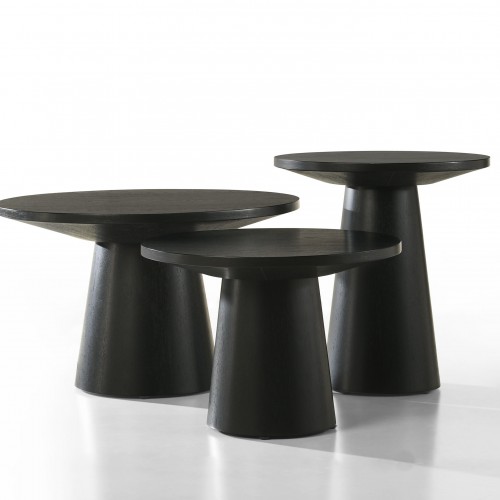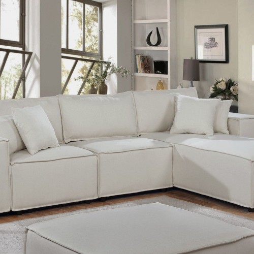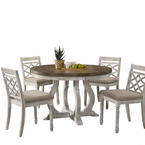 Havanna – 5 Piece Wide Round Dining Table With Off White Chairs (Set of 5) – Vintage Walnut