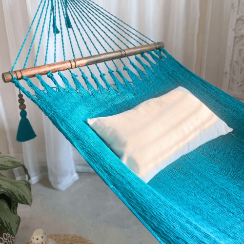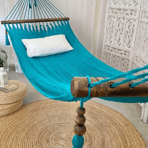 Woven Turquoise Hammock With Wood Spreaders | JULIANNA