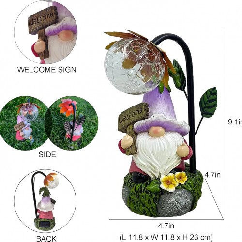 Garden Gnomes Outdoor Statue with Solar Lights Welcome Gnome Home Garden Decor Mom Gifts for Yard Patio Home Garden