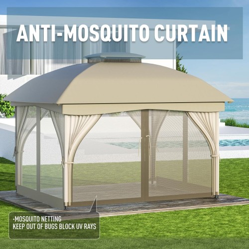 MOWOX POWER Gazebo 10′ x 12′ with Mosquito Netting, European-Style Ventilation Double Roof, Outdoor Gazebo for Patio, Garden, Lawn, Backyard.(Khaki)