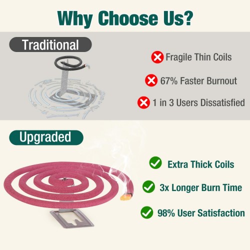 Extra Strong Mosquito Repellent Coils, 24 Pack Large Outdoor Coils Insect Repellent DEET Free, 6-Hour Protection Covers 12ft, Safe & Effective for Yard, Patio, Camping, Garden, Deck & BBQ Areas