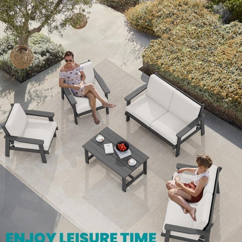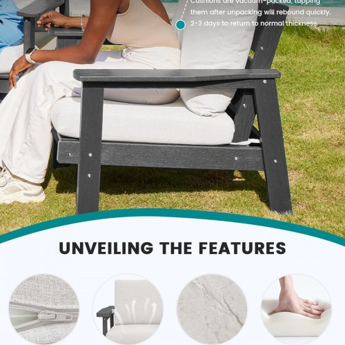 SERWALL HDPE Outdoor Patio Loveseat, Grey Frame and Grey Cushion