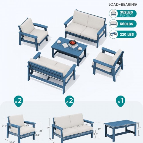 SERWALL HDPE Outdoor Patio Loveseat, Blue Frame and Khaki Cushion
