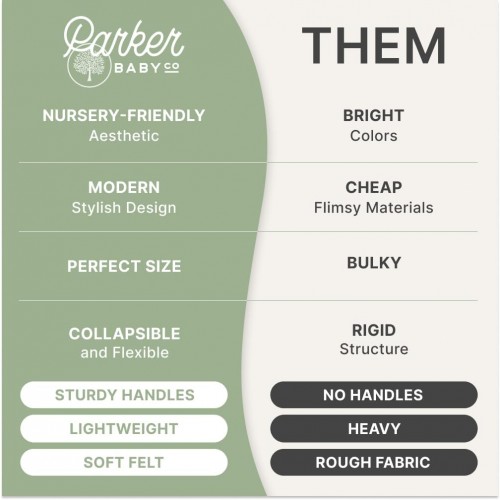 Parker Baby Nursery Laundry Hamper – Large Felt Storage Basket and Baby Hamper for Nursery (Gray)
