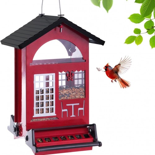 Squirrel Proof Bird Feeders All Metal Bird Seed House Feeder for Outdoors Hanging Weight Activated 5 LB Large Capactiy Easy to Fill & Clean for Outsides Wild Birds Durable & Attract, Red