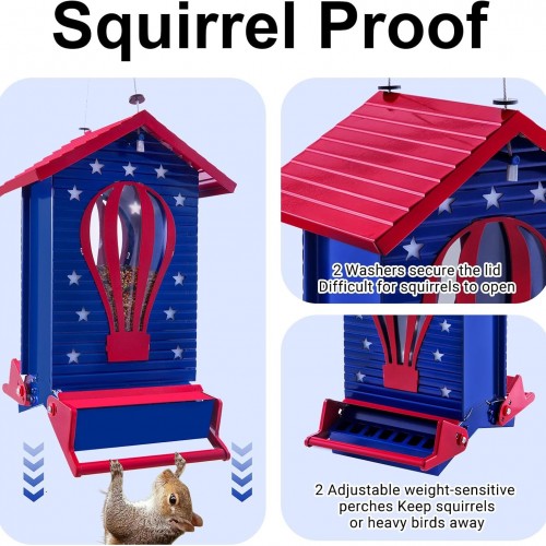 Squirrel Proof Bird Feeder, Metal Bird Seed House Feeders for Outdoors Weight -Activated Protection, Water Proof, 5 lbs Large Capacity Anit Squirrel for Outside Cardinal, Chickadee