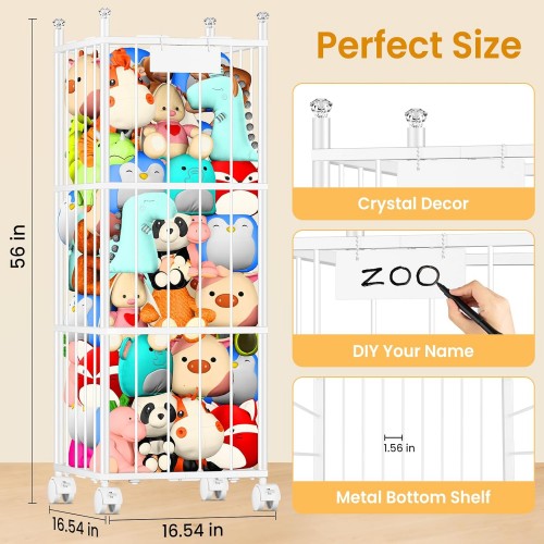 TomCare Extra Large Stuffed Animal Storage Metal Storage Organizer with 4 Lockable Wheels Space Saving Stuffed Animals Holder for Playroom Bedroom