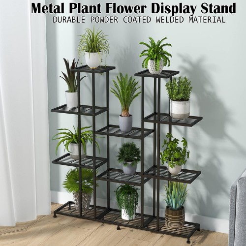 Twhep Tall Multi Tier Plant Stand, 13 Tiers Multifunctional Plant Stands for Indoor Plants, Decorative Black Steel Plant Shelf for outdoor Patio Garden Balcony and Yard