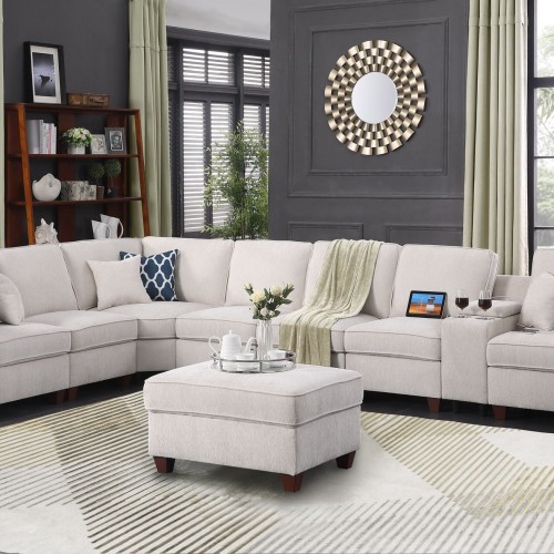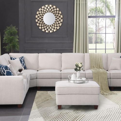 Tatman – Linen Blend Sectional With 2 Ottomans – Dark Gray