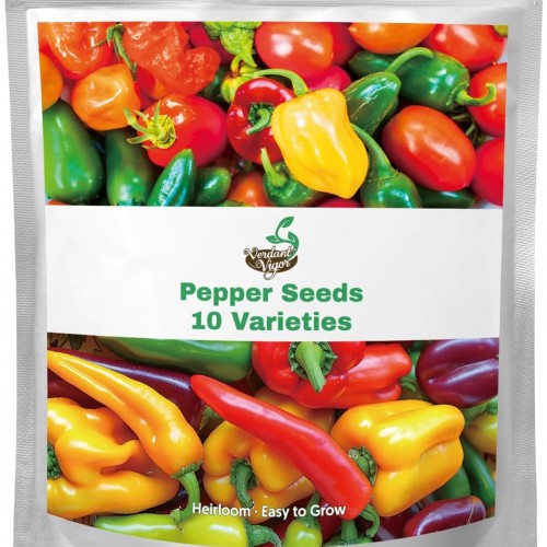 600+ Pepper Seeds, Heirloom Vegetable Seed for Planting Indoor Outdoor, 10 Varieties Hot and Bell Pepper (Capsicum Annuum) Seeds Garden Kit, Non-GMO Home Fresh Food Hydroponic Veggie Supply