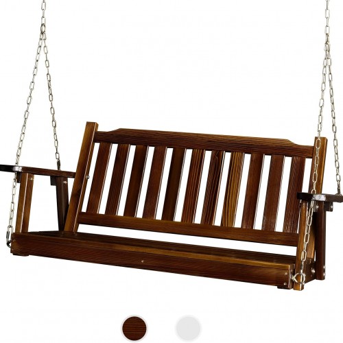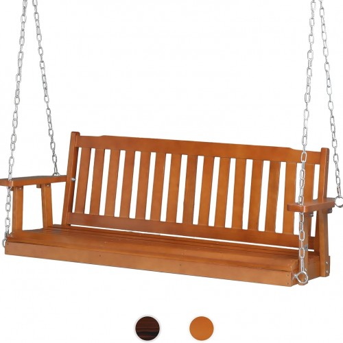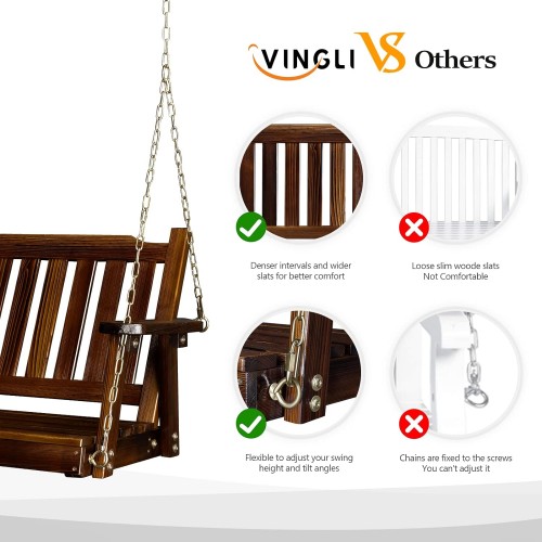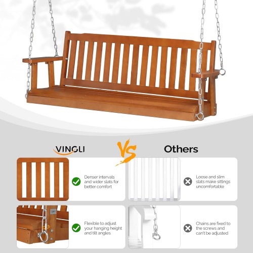 VINGLI Heavy Duty 880 LBS 5 FT Wooden Porch Swing Outdoor, Outdoor Hanging Swing Bench (5 FT, Brown)