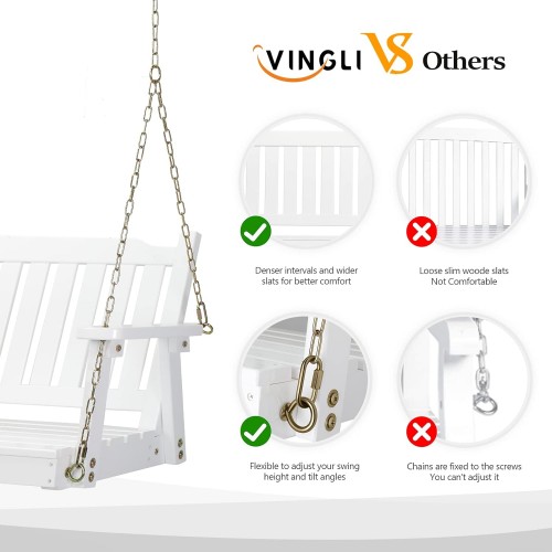 VINGLI Heavy Duty 880 LBS 4 FT Outdoor Porch Swing, Patio Hanging Swing Bench for Yard, White
