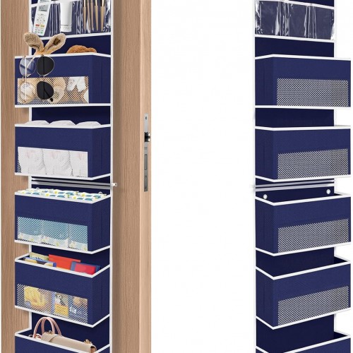 - Easy to Install: first attach the hooks over the door, then hang the room organizer from the hooks, then insert the cardboard into the bottom and finally put items into the storage