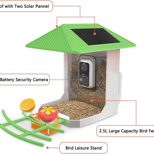 - 【2.5K HD Battery Security Camera】With 2.5K High resolution, this bird feeder camera allows you to get the best shots of image and video in color even at night. You can not only see birds clearly in selfie-like perspective but also capture close-up details with 8x magnification such as their feathers. with the color night vision and IR night vision, it can capture every detail of your bird visitors even at night.