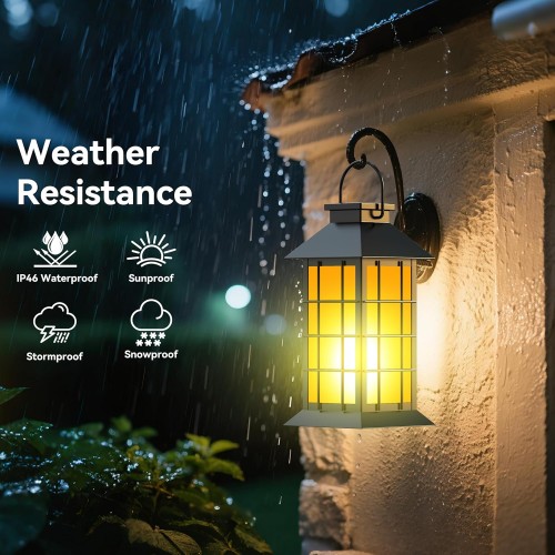 - Authentic Flickering Ambiance: Our solar lantern with flickering flame candle recreates a warm, realistic flame effect—completely flameless yet stunningly lifelike. These black metal & glass hanging lanterns add cozy charm to patios, gardens, balconies, and yards, perfect for family evenings or outdoor gatherings
