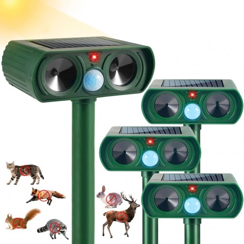 - Solve 99% of Animal Invasion Worries: Advanced Dual-Chip Functionality-Animal repellent ultrasonic outdoor uses advanced microelectronics to emit alternating high-pressure and ultrasonic waves (13.5KHz-45.5KHz). With LED strobe lights, it disrupts animal vision in areas, creating a highly unpleasant environment.The combination of sound waves and visual interference targets an animal’s auditory and nervous systems, making them uncomfortable and driving them away